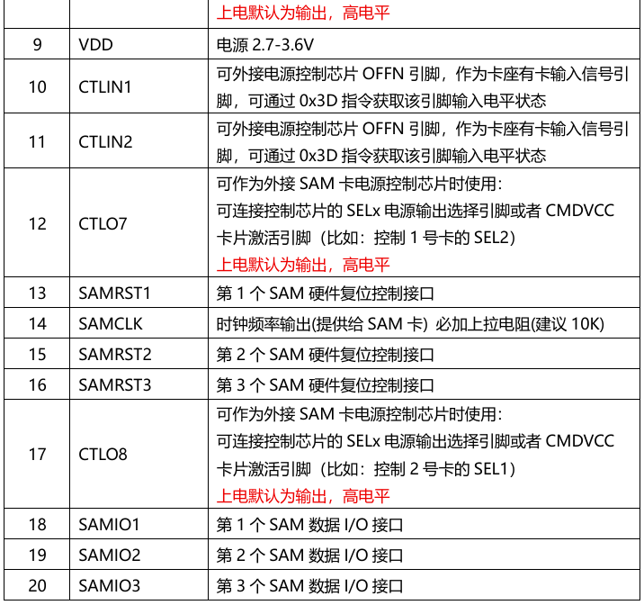 - 可控6路输出信号和2路输入信号,可以控制外部电源接口芯片,实现对1.8V 3V 5V卡片支持