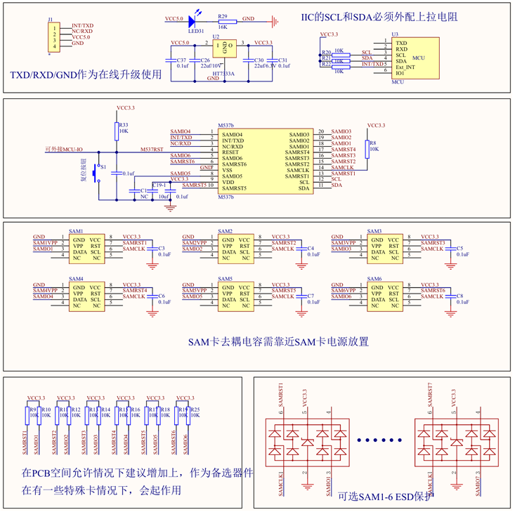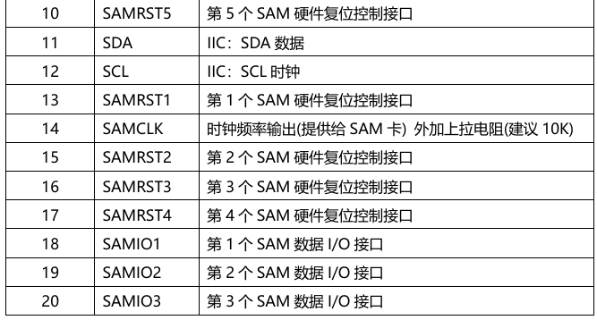 | M537b | IIC接口 支持6个SAM卡 | SAM9600,SAM38400,SAM115200 ISO7816-4 CPU卡 T=0 T=1卡片 |