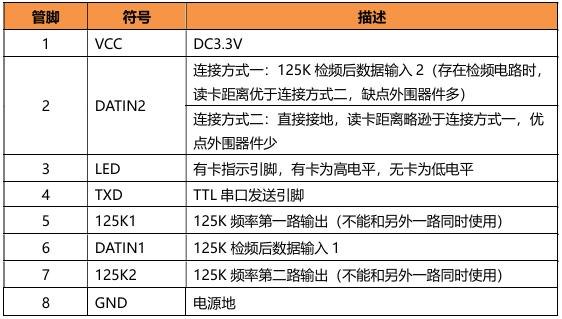 - 支持卡片:EM4001/TK4001/EM4100/TK4100及其兼容卡片