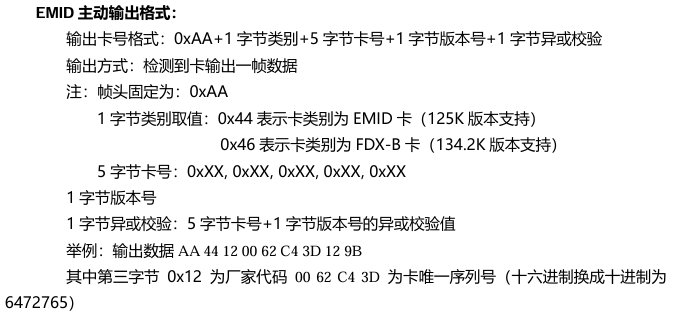 | M661a | UART接口 | EM4001,EM4100,TK4001,TK4100及其兼容卡 |